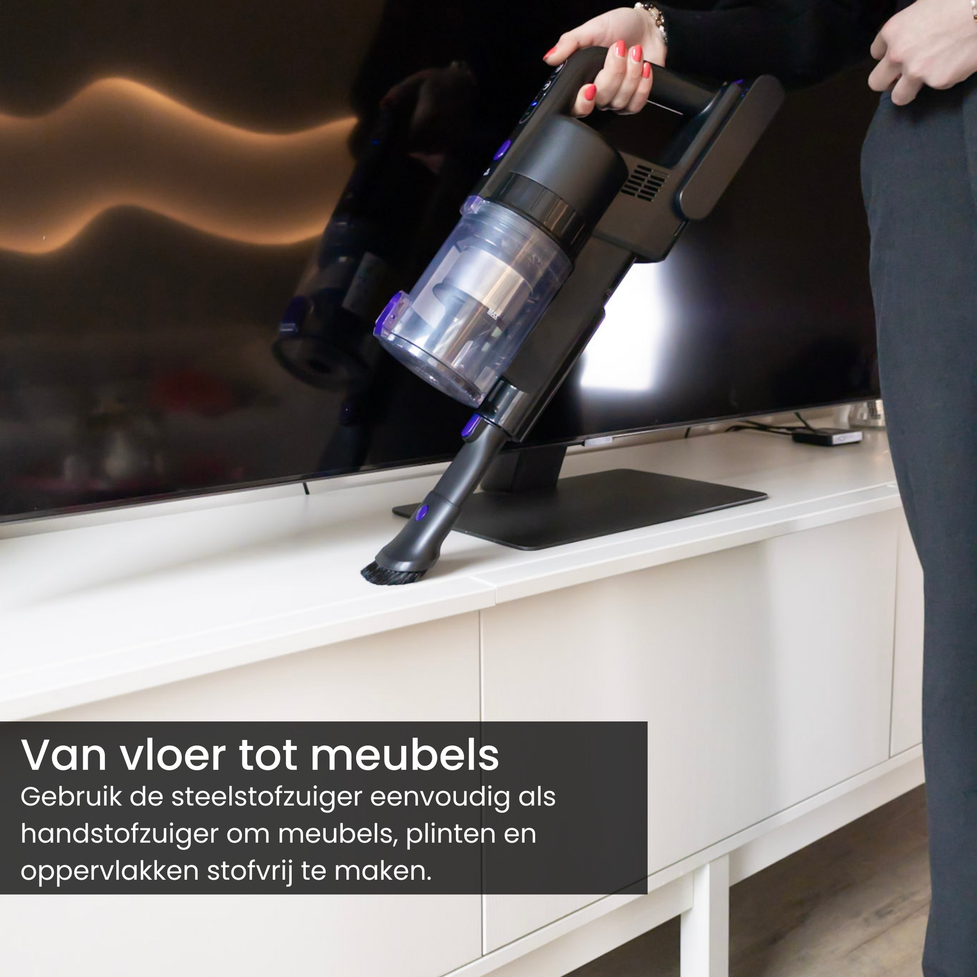 • Steelstofzuiger V07: Voor die extra schoonmaakboost waar je net even bij moet komen! Lichtgewicht en draadloos, zodat je moeiteloos door het hele huis kunt gaan. Perfect voor trappen, meubels, en moeilijk bereikbare plekken.