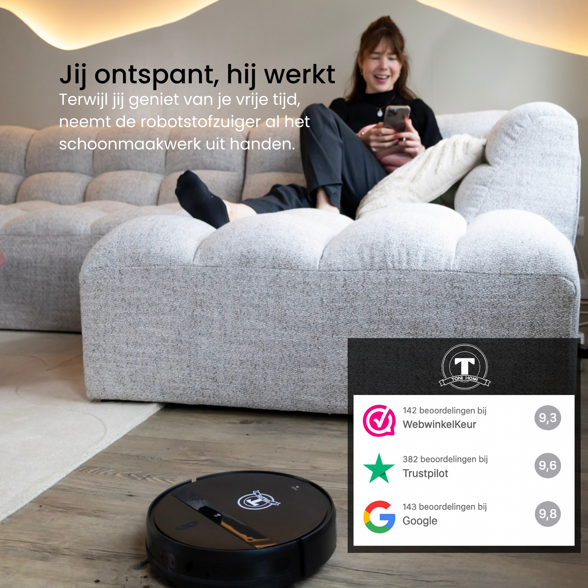 Ja! Een robotstofzuiger neemt je niet alleen het stofzuigen uit handen, maar werkt ook volledig zelfstandig. Je hoeft dus niet thuis te blijven terwijl hij zijn werk doet. Met een Toni Homi-stofzuiger kun je hem zelfs op afstand bedienen, waar je ook bent – of je nu op je werk bent of op vakantie. Zo kom je altijd thuis in een schoon huis!