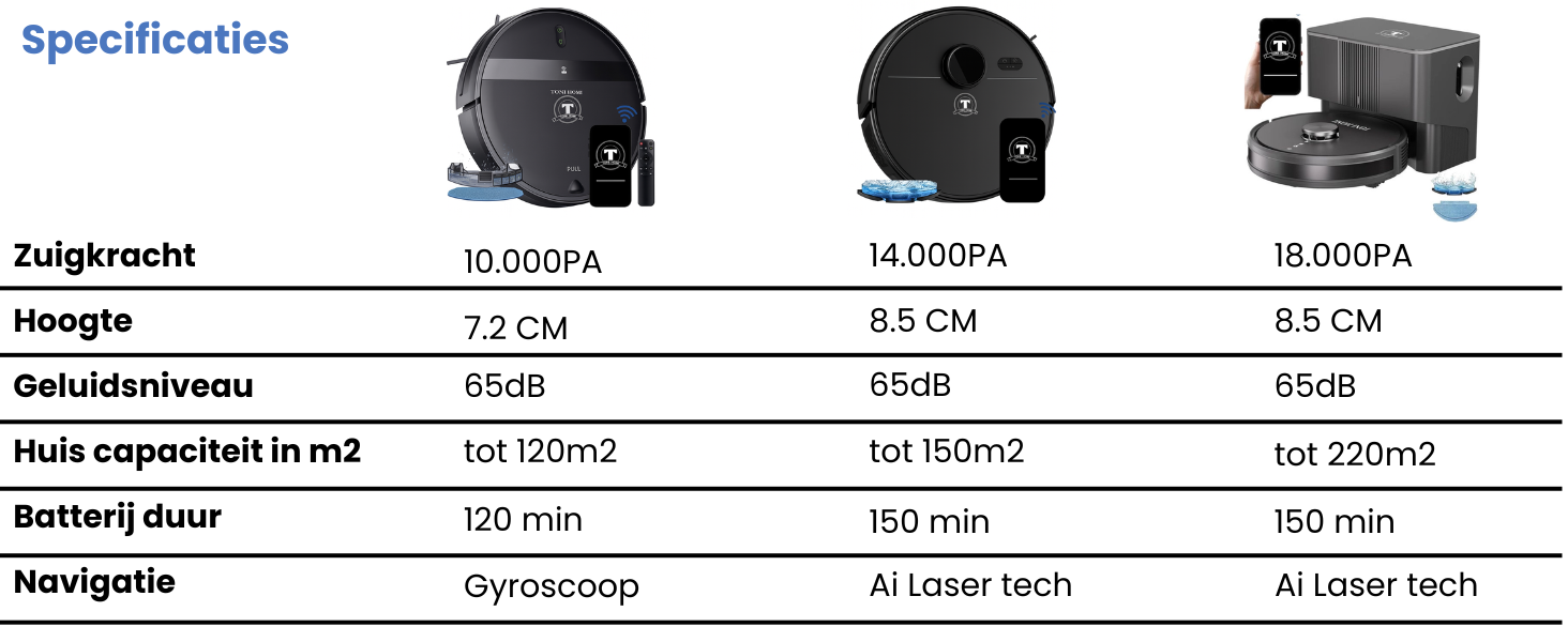 ToniHomi wordt vertrouwd door honderden tevreden klanten en biedt krachtige schoonmaakprestaties en slimme technologie. Vergelijk ons met andere merken en ontdek waarom wij de beste keuze zijn voor een moeiteloos schoon huis!
