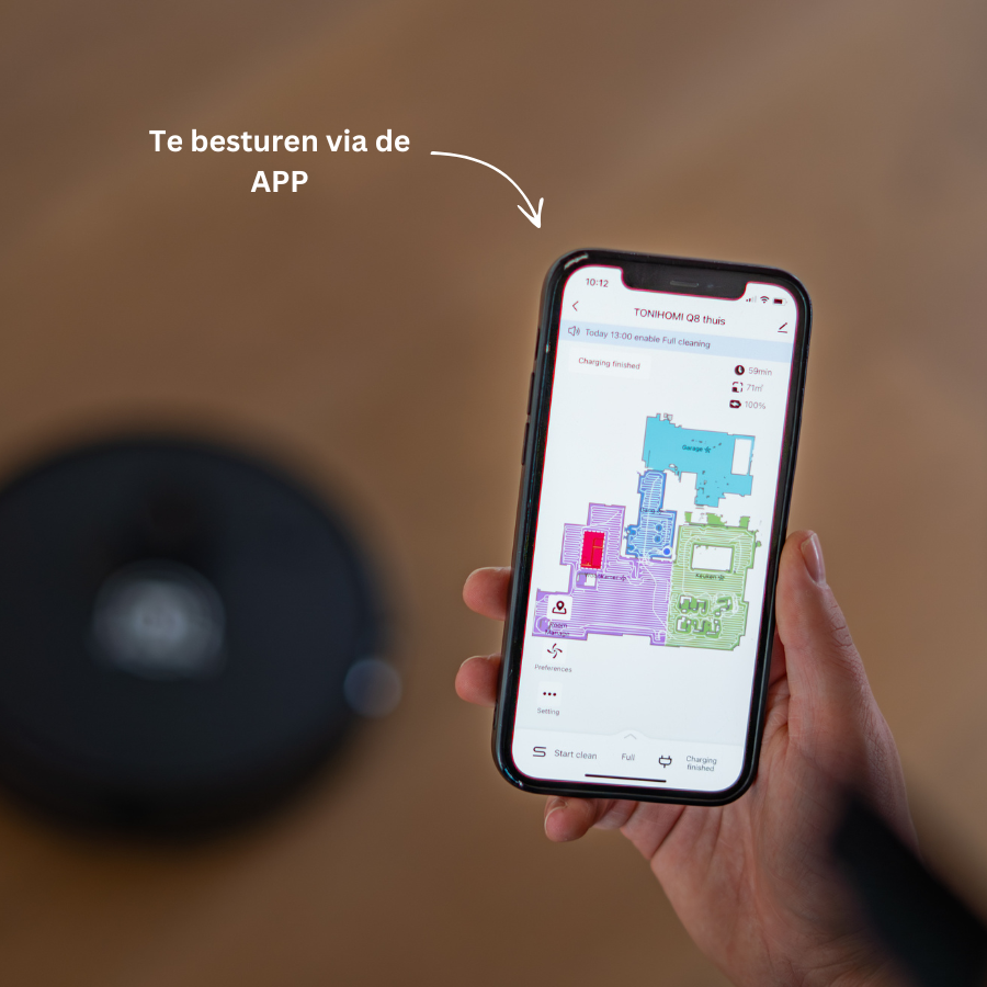 Download de Toni Homi-app en bedien je robotstofzuiger overal. Stel schema’s in, pas zuigkracht aan en markeer zones. Volg realtime de voortgang. Beschikbaar in de App Store en Google Play Store!