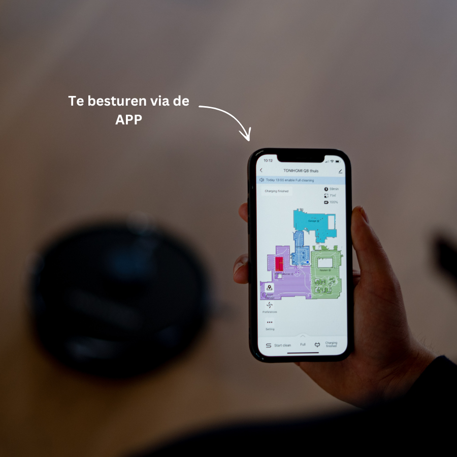 Download de Toni Homi-app en bedien je robotstofzuiger overal. Stel schema’s in, pas zuigkracht aan en markeer zones. Volg realtime de voortgang. Beschikbaar in de App Store en Google Play Store!
